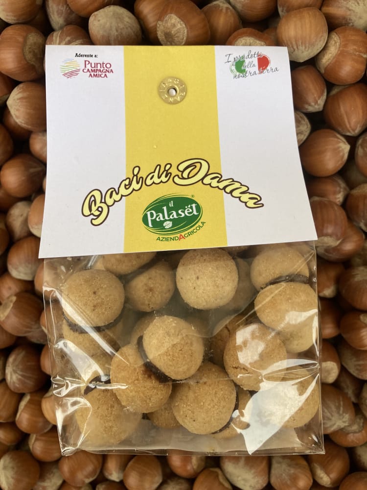 nocciole, farina tipo 0, zucchero, burro, uova, cioccolato fondente (pasta di cacao, zucchero, burro di cacao, lecitina di soia, etratto di vaniglia), vanillina.